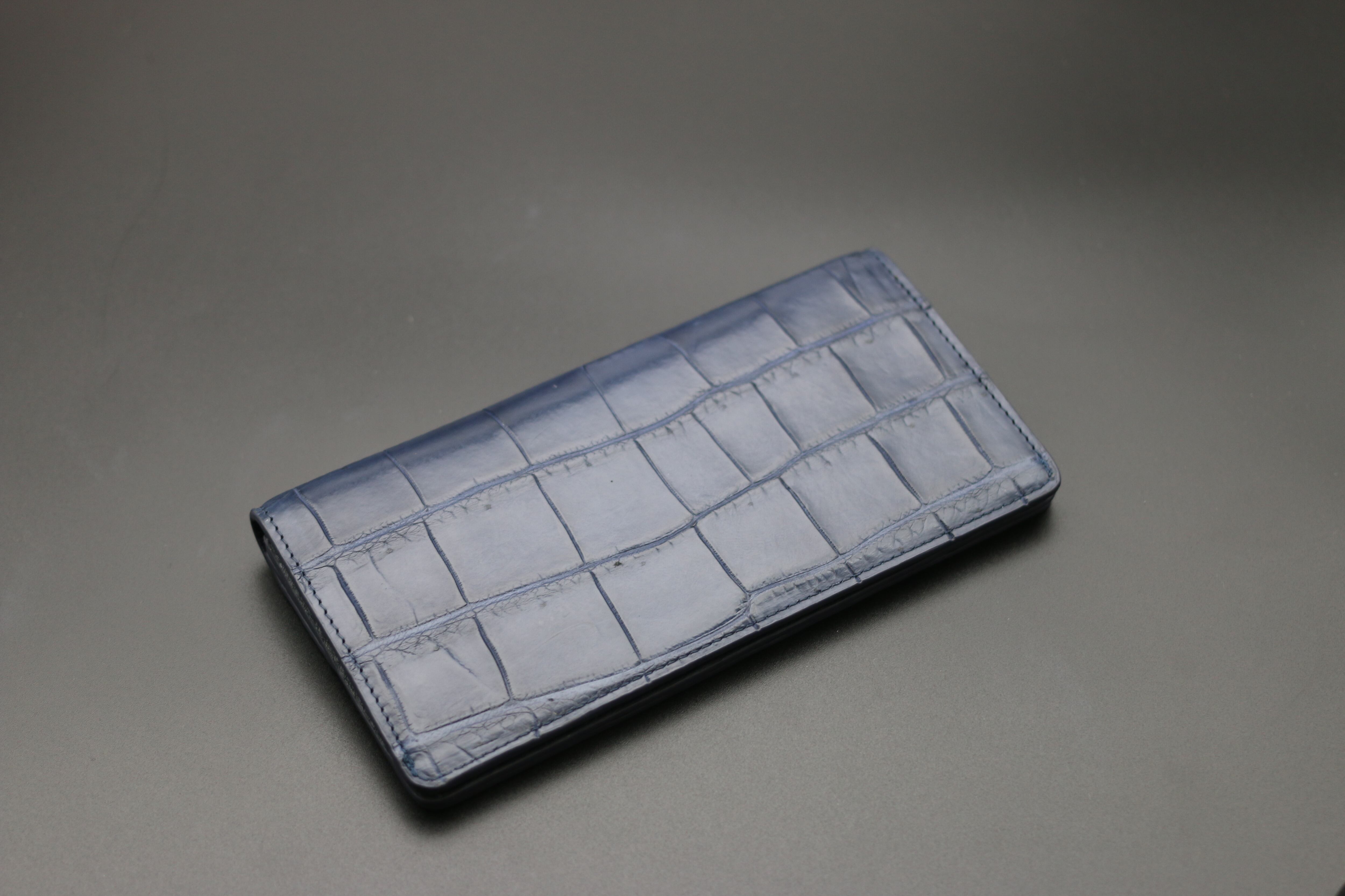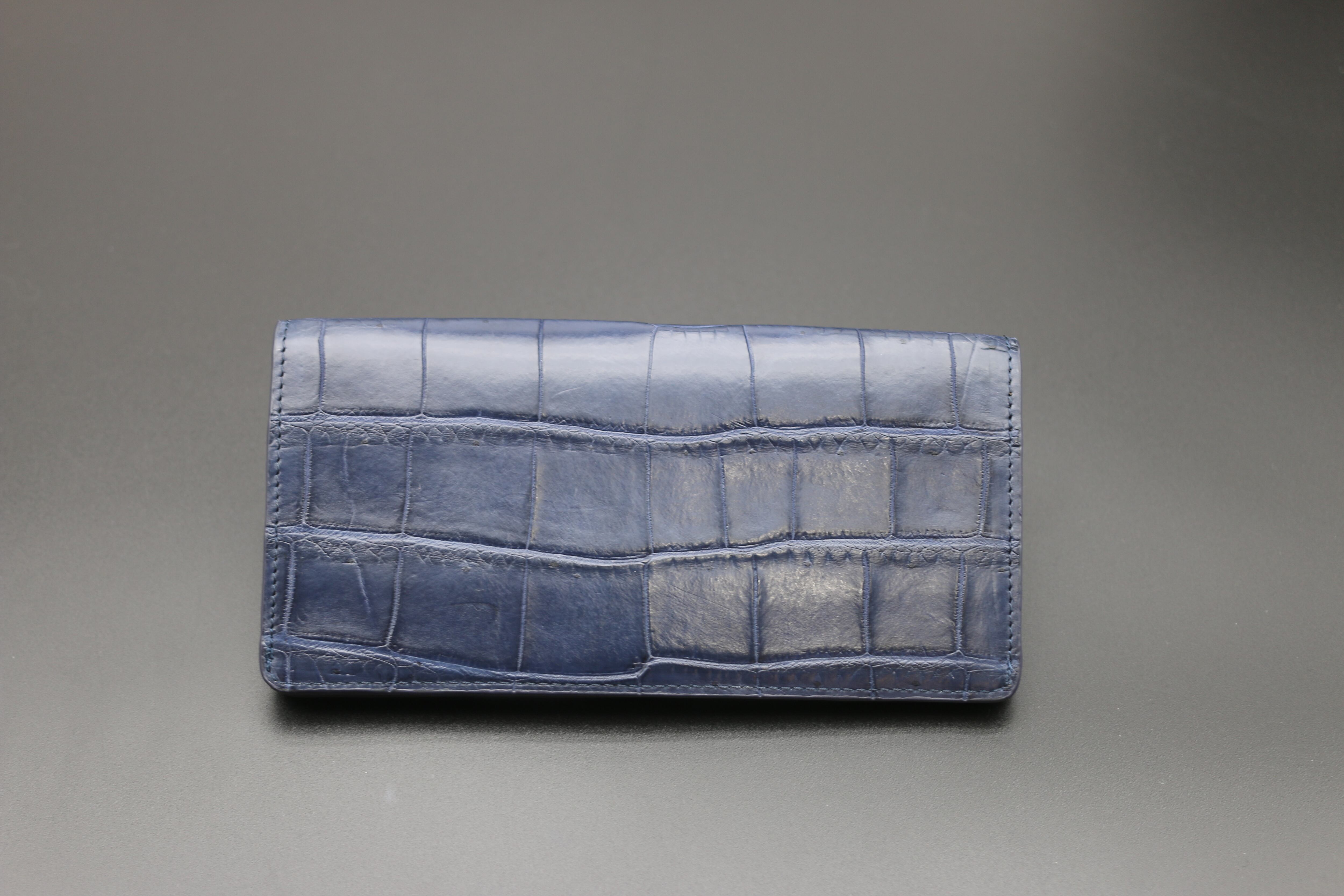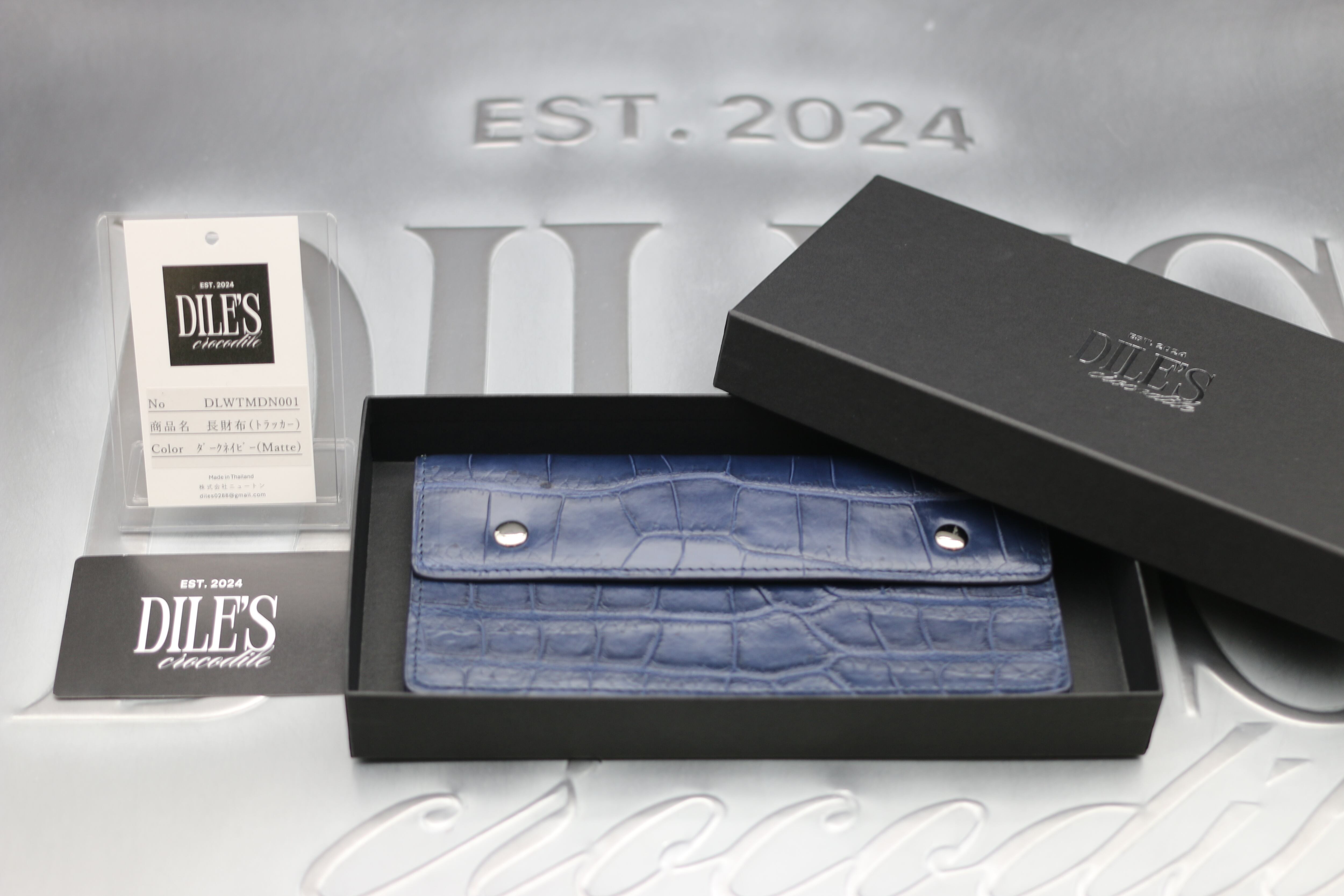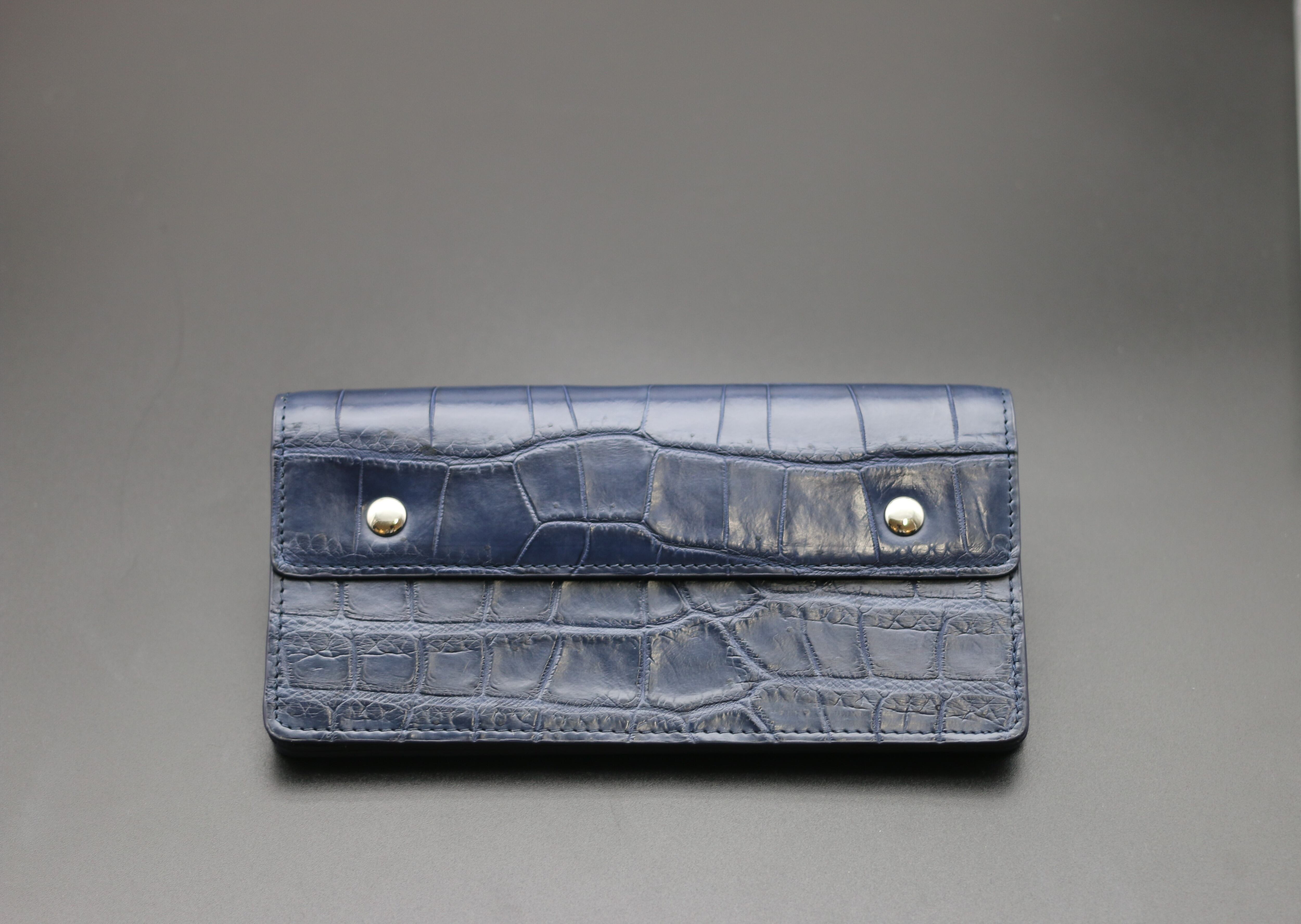 ワイルドさと洗練が共存する、大人のための逸品。 クロコダイルレザーの重厚な質感に、トラッカーウォレットの無骨なデザインを融合させた長財布です。