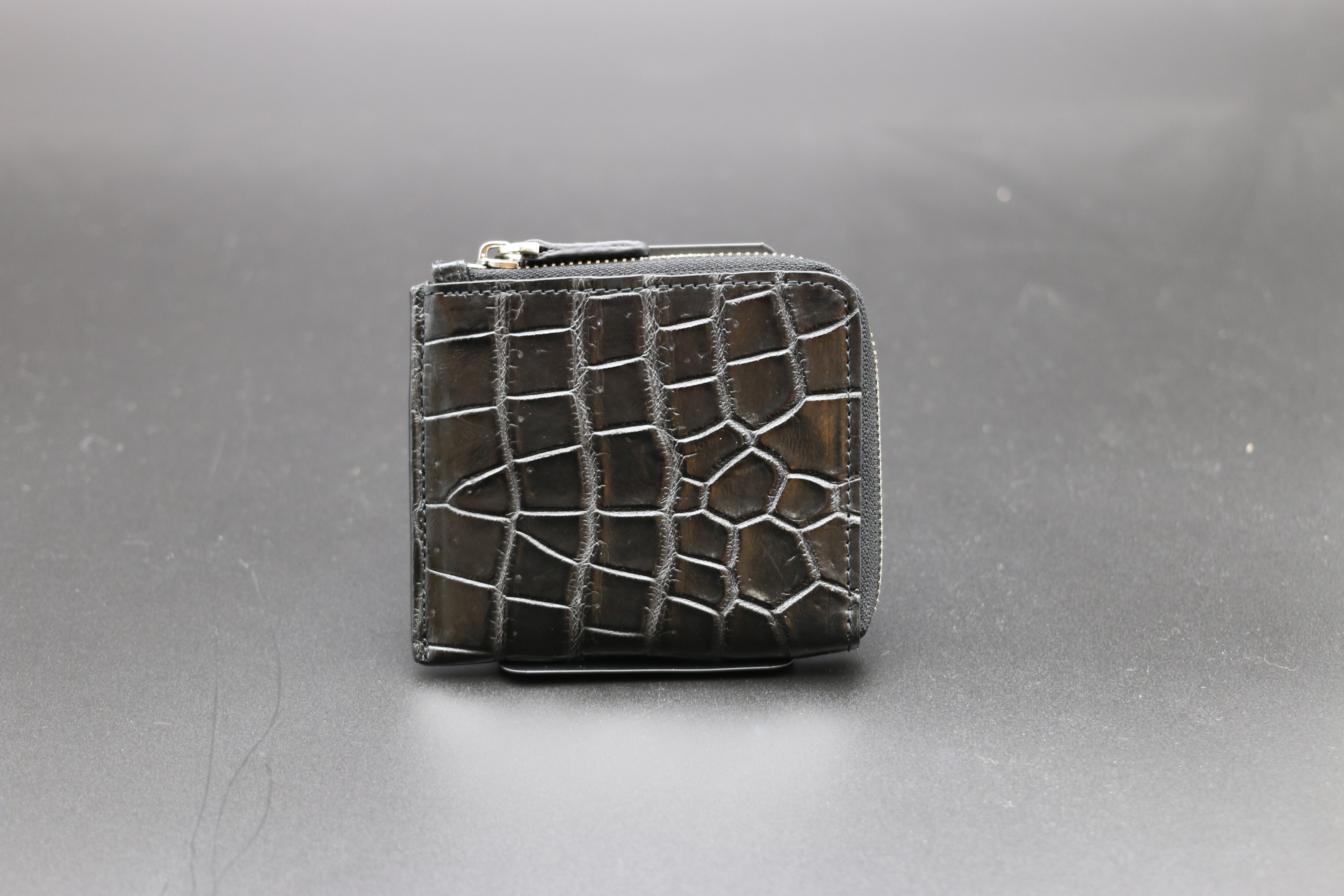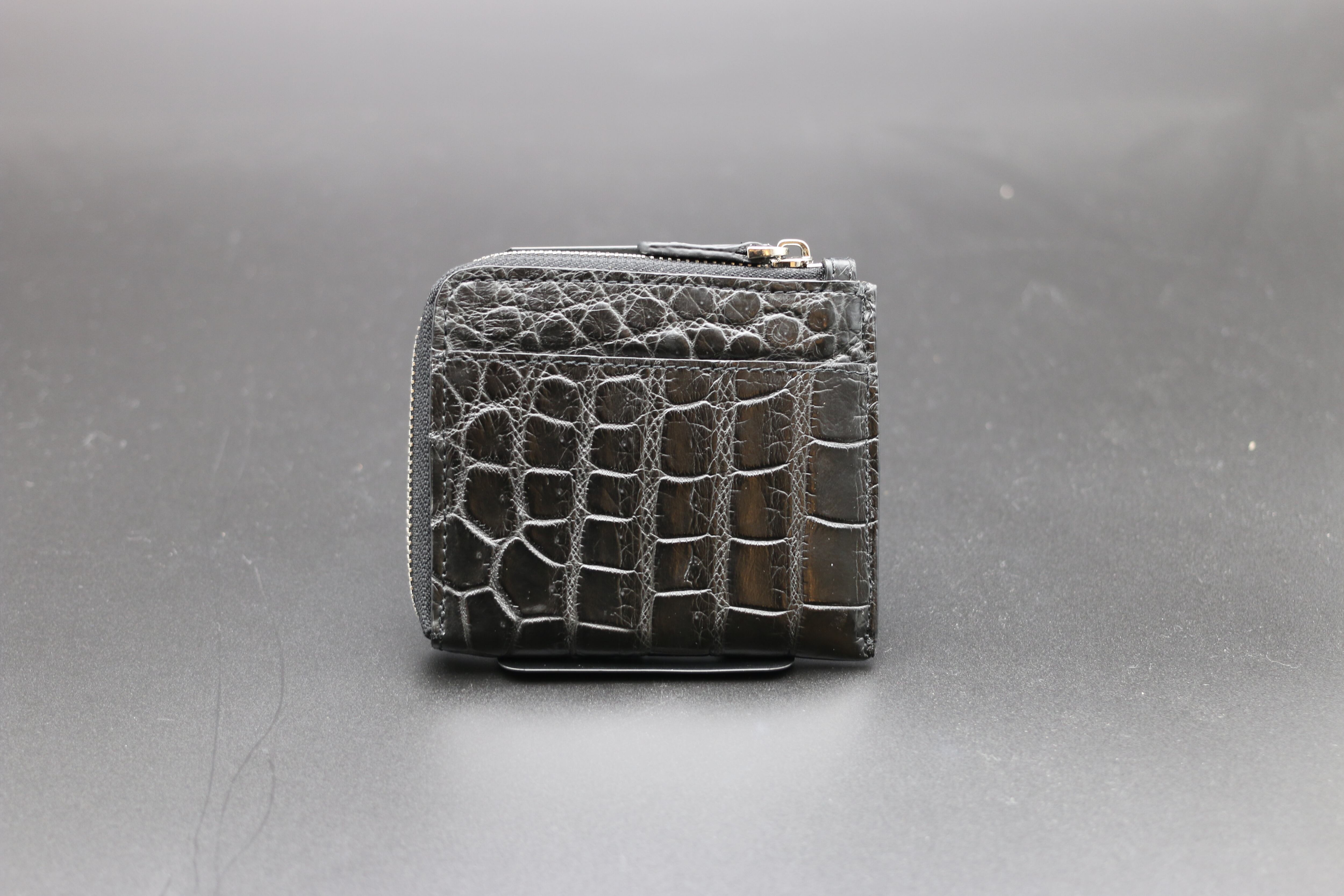 圧倒的な存在感を放つ、リアルクロコダイルレザーのL字ファスナー小銭入れ。 無駄を削ぎ落としたミニマルなフォルムに、野性味とラグジュアリーが共存する。