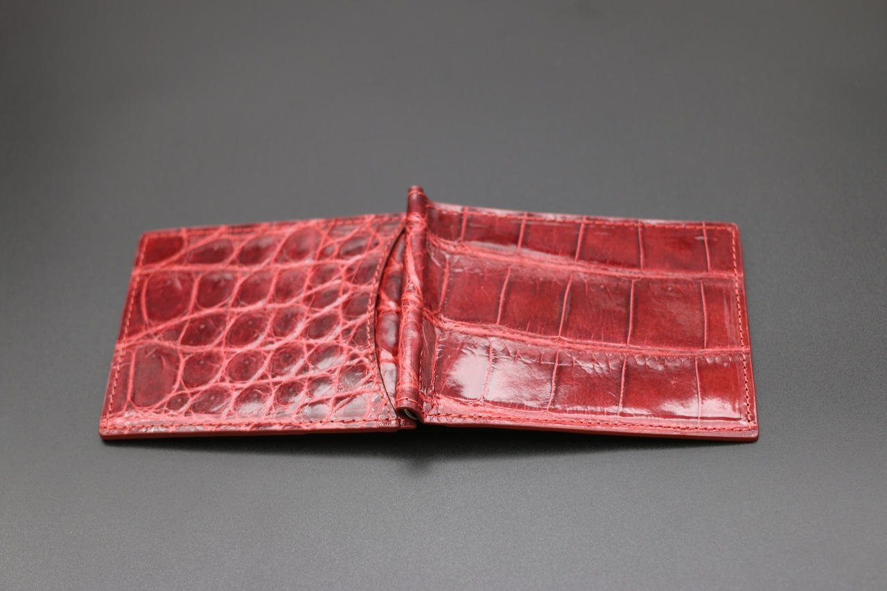 洗練された大人の品格を演出する、贅沢なクロコダイルレザーのマネークリップ。 希少価値の高い本革を使用し、使うほどに深まる艶と風合いが、持ち主の個性を引き立てます。