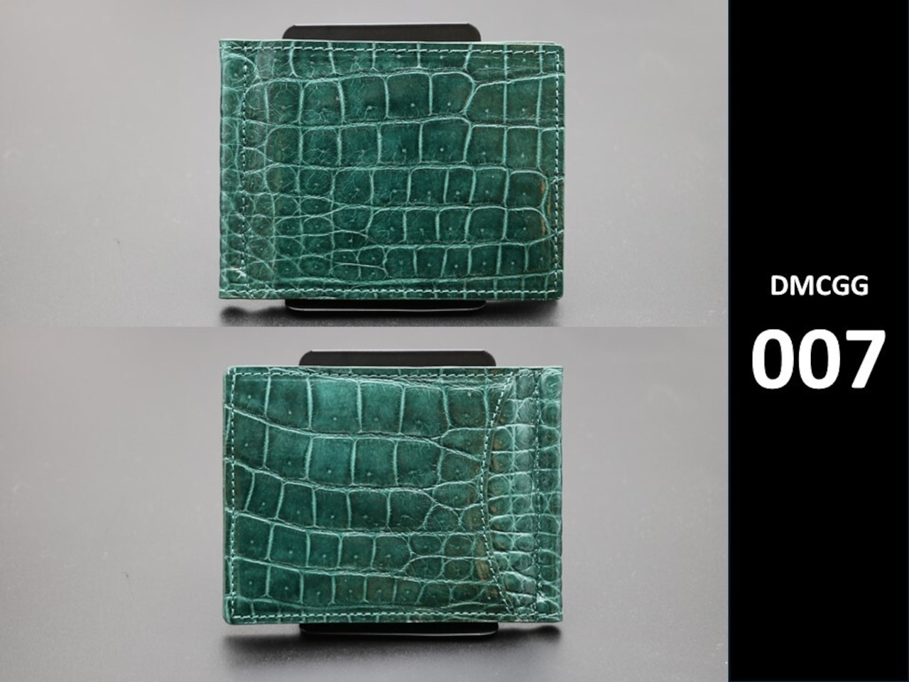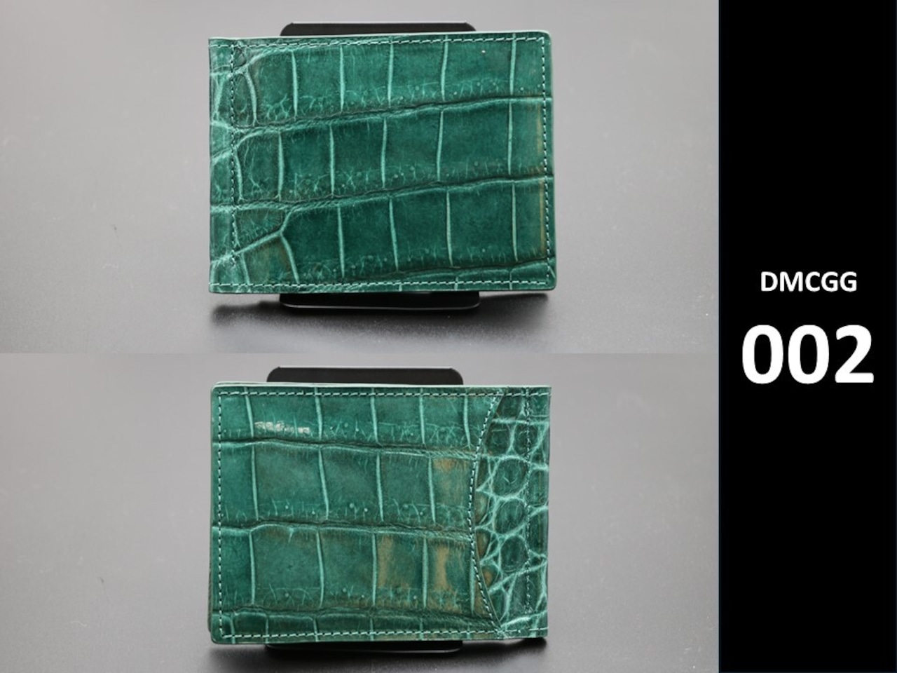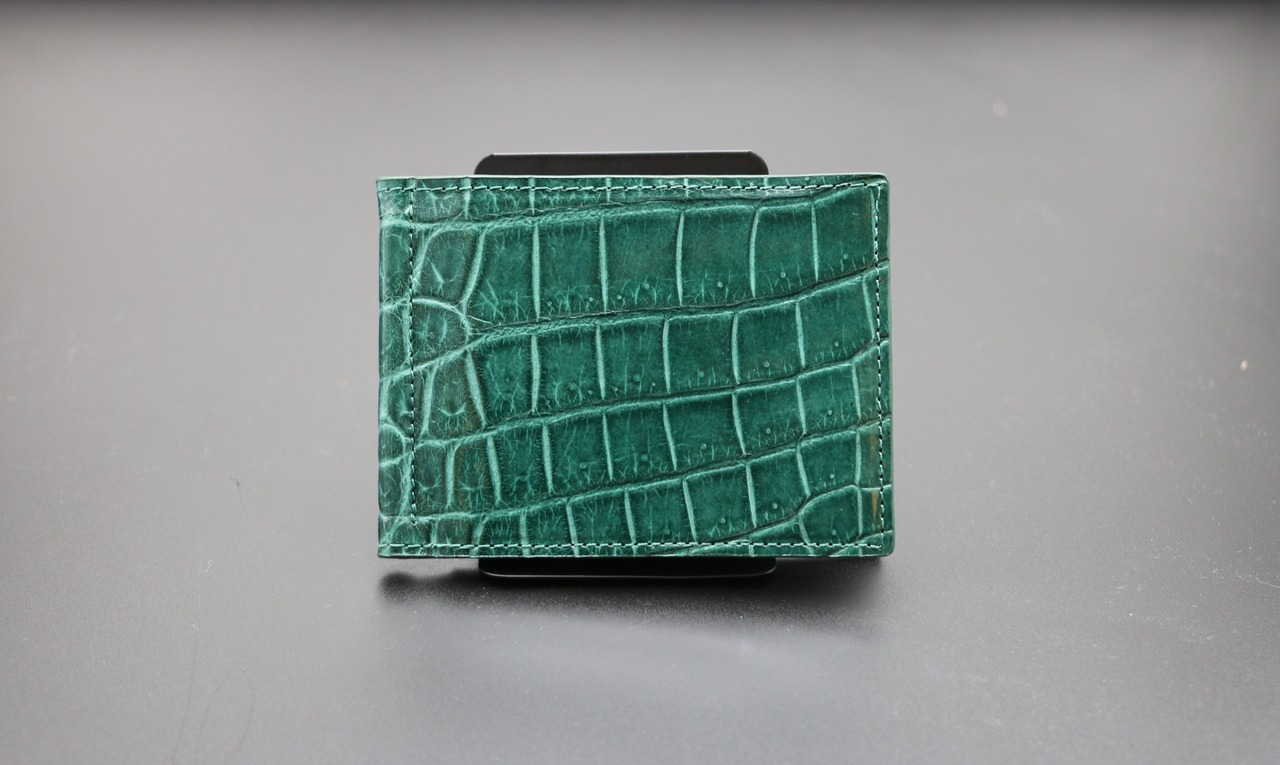 グリーンは自然を思わせる穏やかさと、洗練された都会的な印象を併せ持つ、奥深いカラーです。 クロコダイルレザーの立体的な鱗模様と融合することで、ただの「緑」ではない、重厚感と品格を備えたグリーンに仕上がっています。