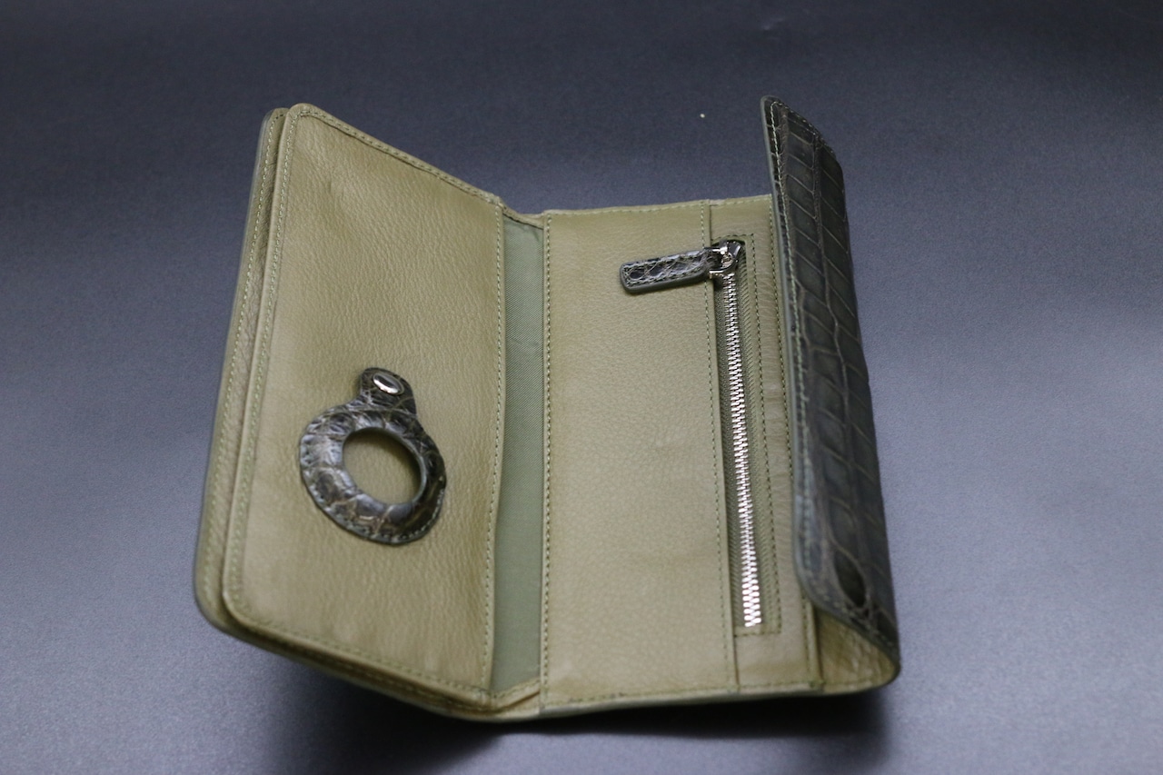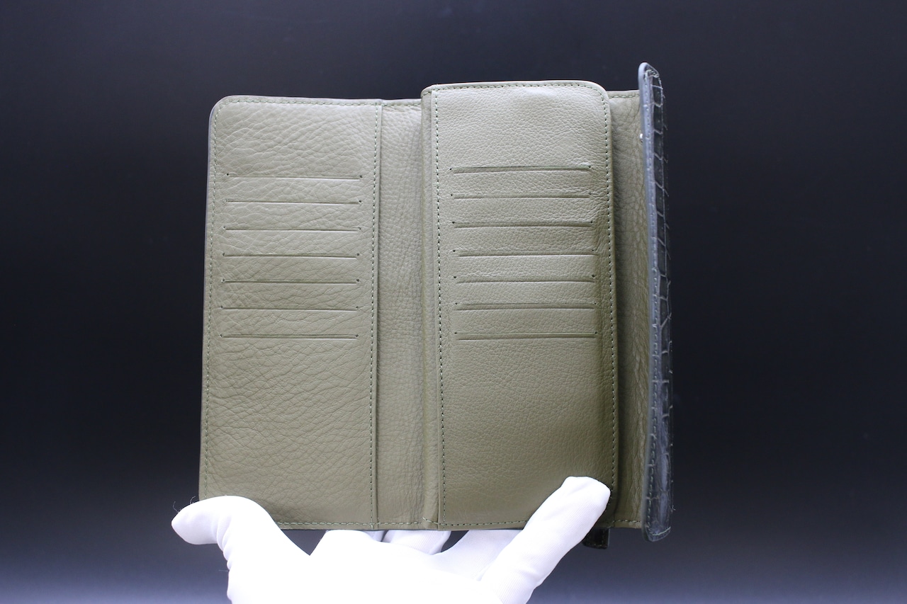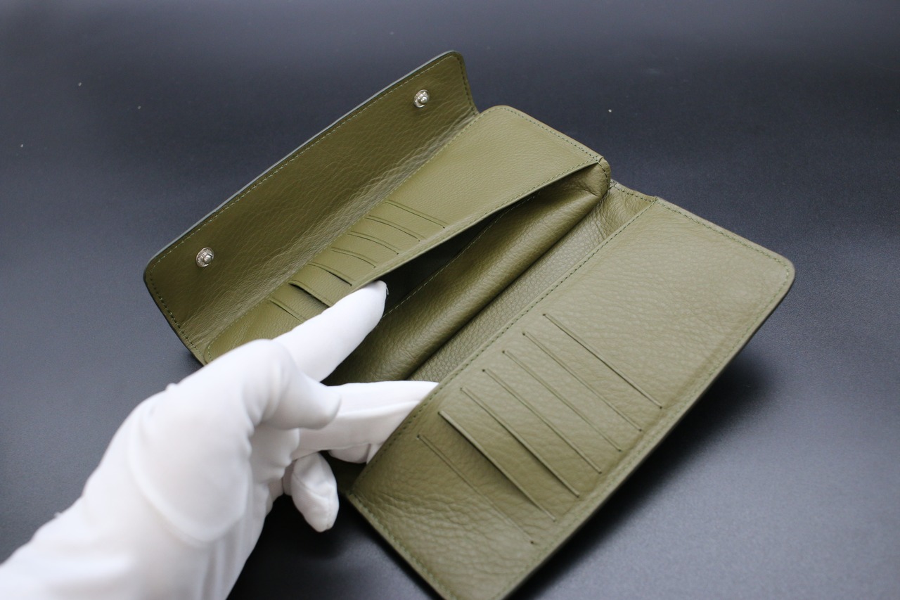 カラーは、深緑に黒を溶け込ませた「ブラックオリーブ」。自然光や室内灯で異なる表情を見せ、持つ人の洗練を際立たせます。