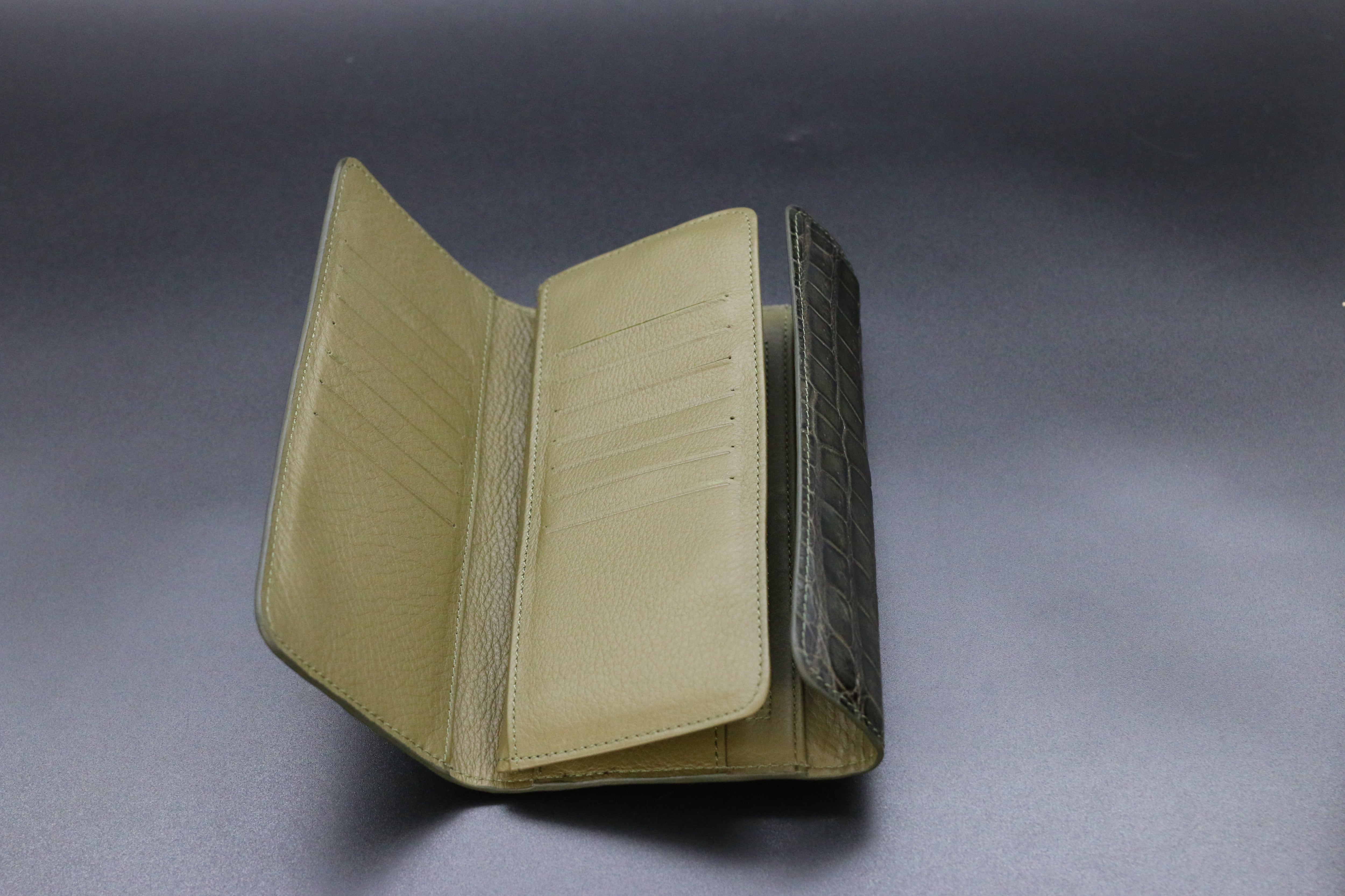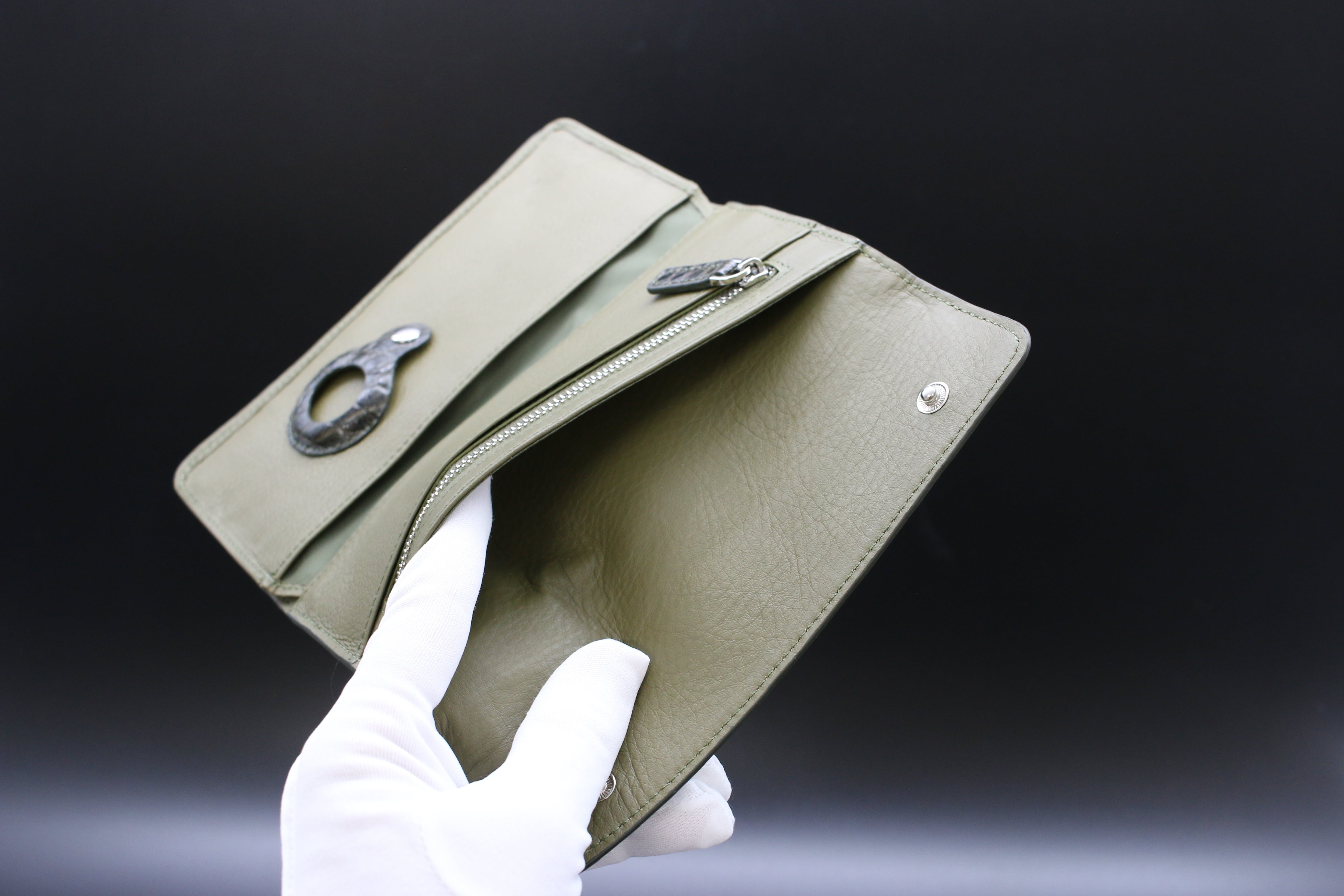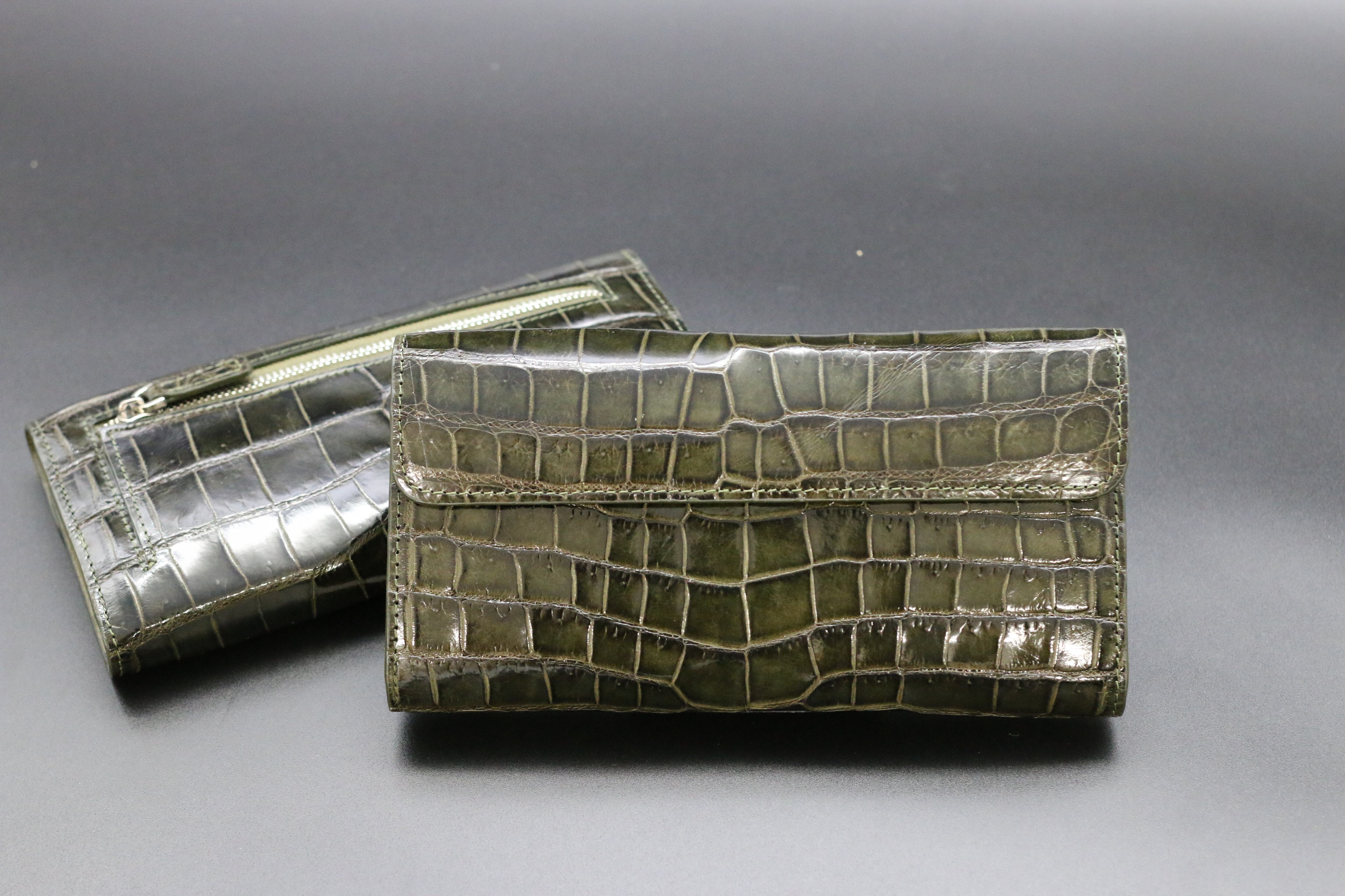クロコダイル ロングウォレット ブラックオリーブ