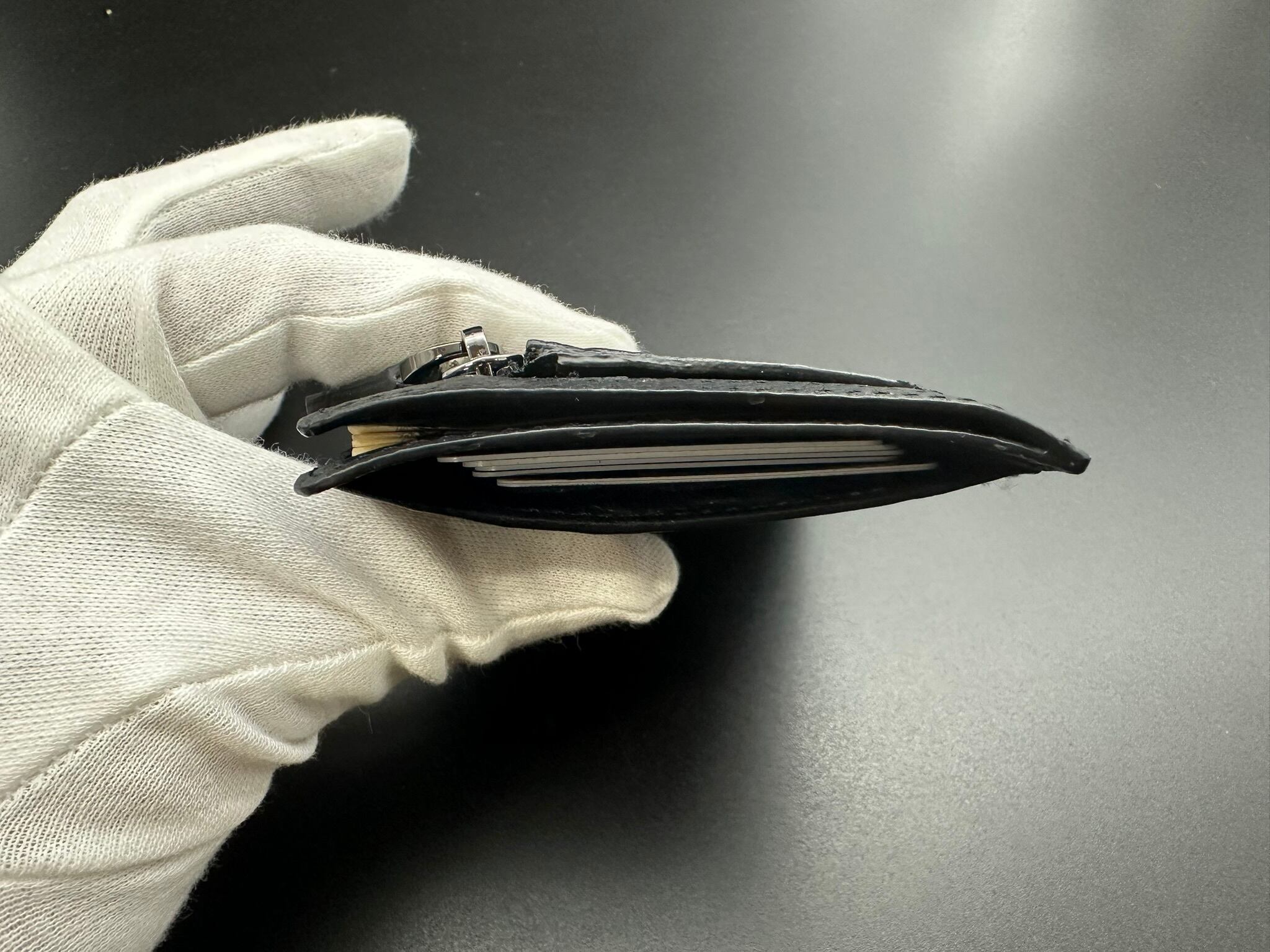 Dile'sスタッフは、このカードケースをポケットに入れ